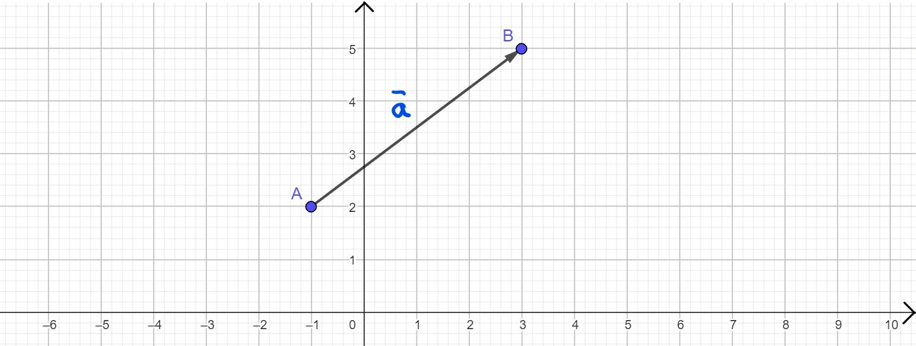 Olkoon pisteet \(A(1,2)\) ja \(B(6,5)\). Määritä pisteiden \(A\) ja \(B\) välinen vektori.