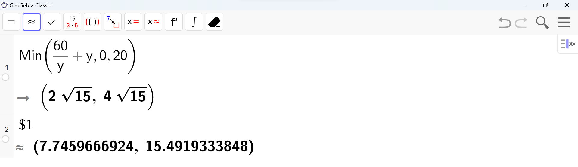 GeoGebralla raja-arvoja voi määrittää seuraavilla komennoilla.