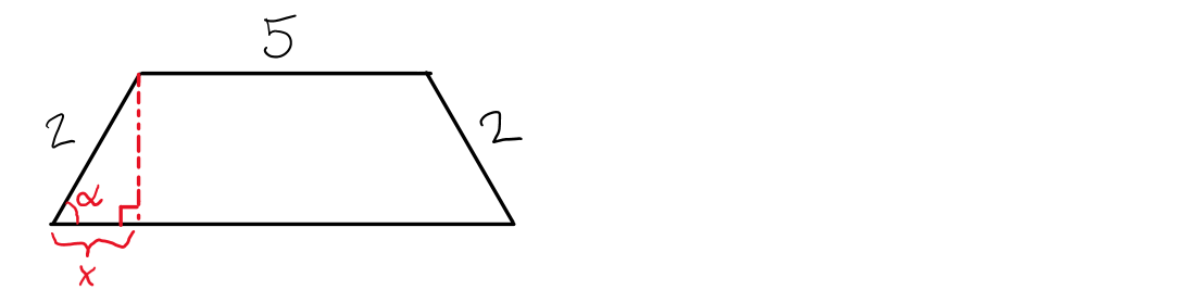 \(\begin{align} A&=\frac{1}{2}\left(5+4\cos\alpha+5\right)2\sin\alpha\\ &=10\sin\alpha+4\cos\alpha\sin\alpha \end{align}\)