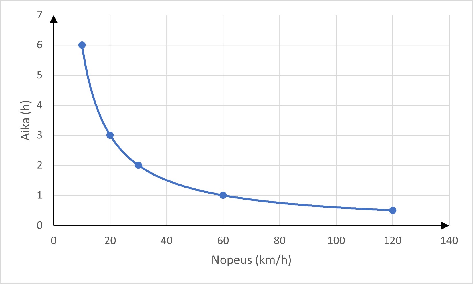 Matkaan kuluva aika on kääntäen verrannollinen nopeuteen, jolla matka kuljetaan.