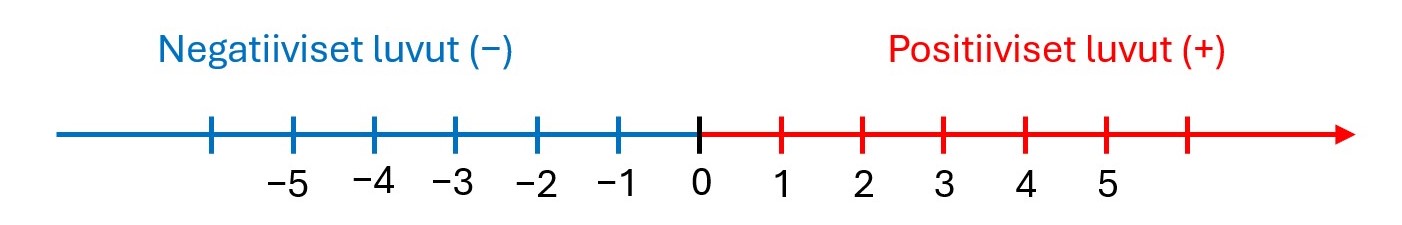 Luvun itseisarvo kuvaa luvun etäisyyttä nollasta lukusuoralla. Luvun \(a\) itseisarvo merkitään \(|a|=a\) ja luvun \(-a\) itseisarvo \(|-a|=a\).