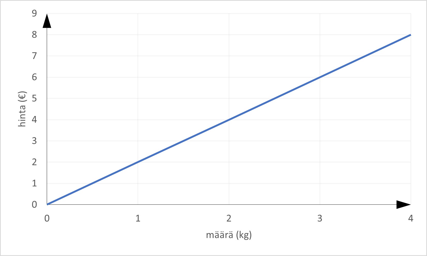 Banaanien hinta on suoraan verrannollinen banaanien määrään (massaan).